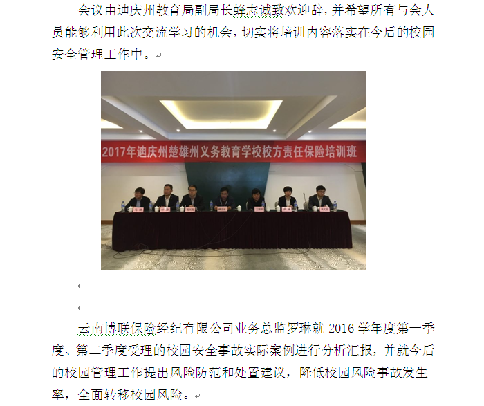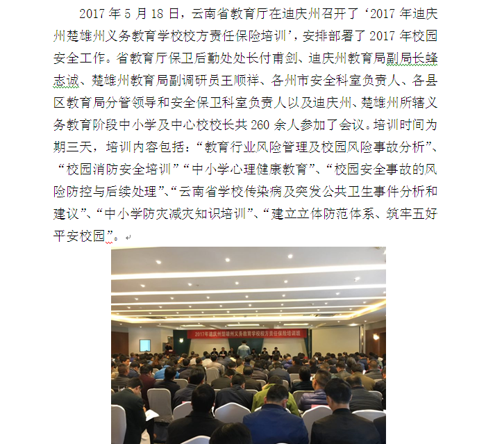 2017年迪慶州、楚雄州義務(wù)教育學(xué)校校方責(zé)任保險(xiǎn)培訓(xùn)會