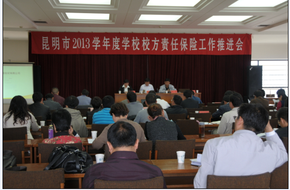 2013年9月26日,昆明市學(xué)校校方責(zé)任保險(xiǎn)工作推進(jìn)會于昆明市行政中心8號樓南樓6樓會議室舉行。昆明市各縣區(qū)教育局、直屬學(xué)校分管校方責(zé)任保險(xiǎn)工作的局(校)領(lǐng)導(dǎo)及負(fù)責(zé)人參加了此次會議。會上,我公司就昆明市校方責(zé)任保險(xiǎn)投保理賠情況進(jìn)行了介紹,并提出了風(fēng)險(xiǎn)管理建議,部分縣區(qū)教育局、直屬學(xué)校相關(guān)業(yè)務(wù)人員分享了校方責(zé)任保險(xiǎn)工作心得。教育局領(lǐng)導(dǎo)部署安排了新年度校園安全以及校方責(zé)任保險(xiǎn)工作。