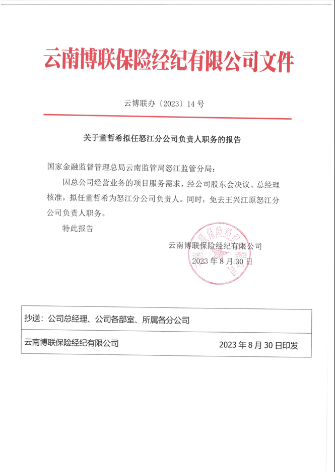 - 關(guān)于董哲希擬任怒江分公司負(fù)責(zé)人