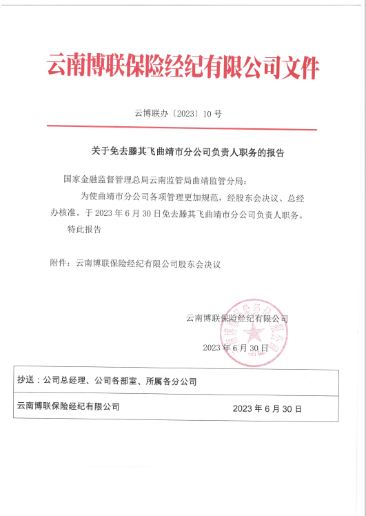 云南博聯(lián)保險經(jīng)紀(jì)有限公司關(guān)于曲