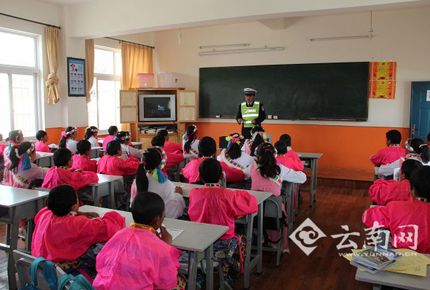 在第十九個全國中小學(xué)安全宣傳教育日到來之際,云南香格里拉縣公安局交警大隊組織民警來到小中甸鎮(zhèn)小學(xué),開展了"美好夢想、安全起步"為主題的交通安全宣傳活動。